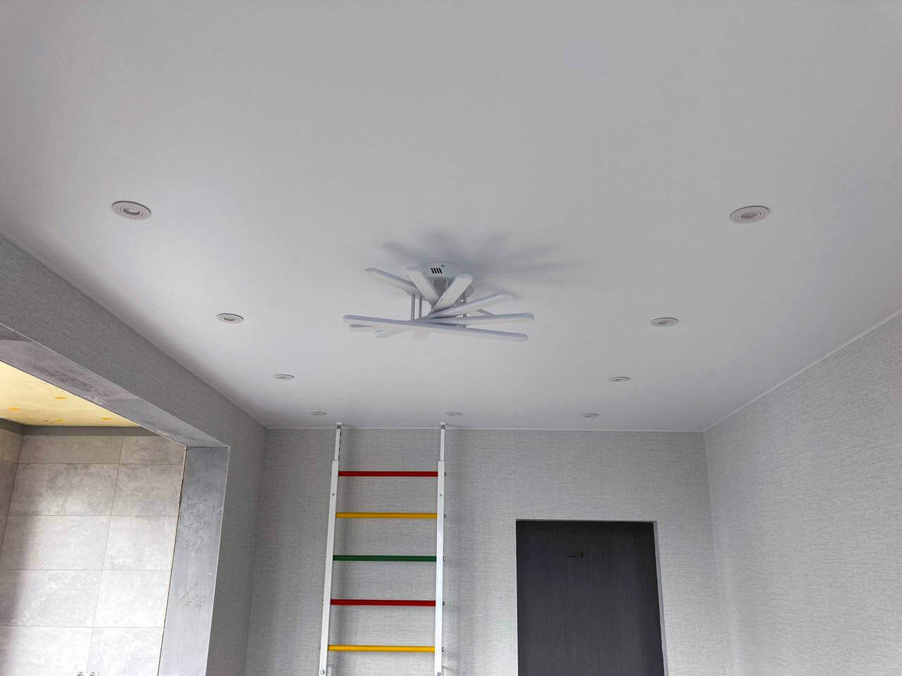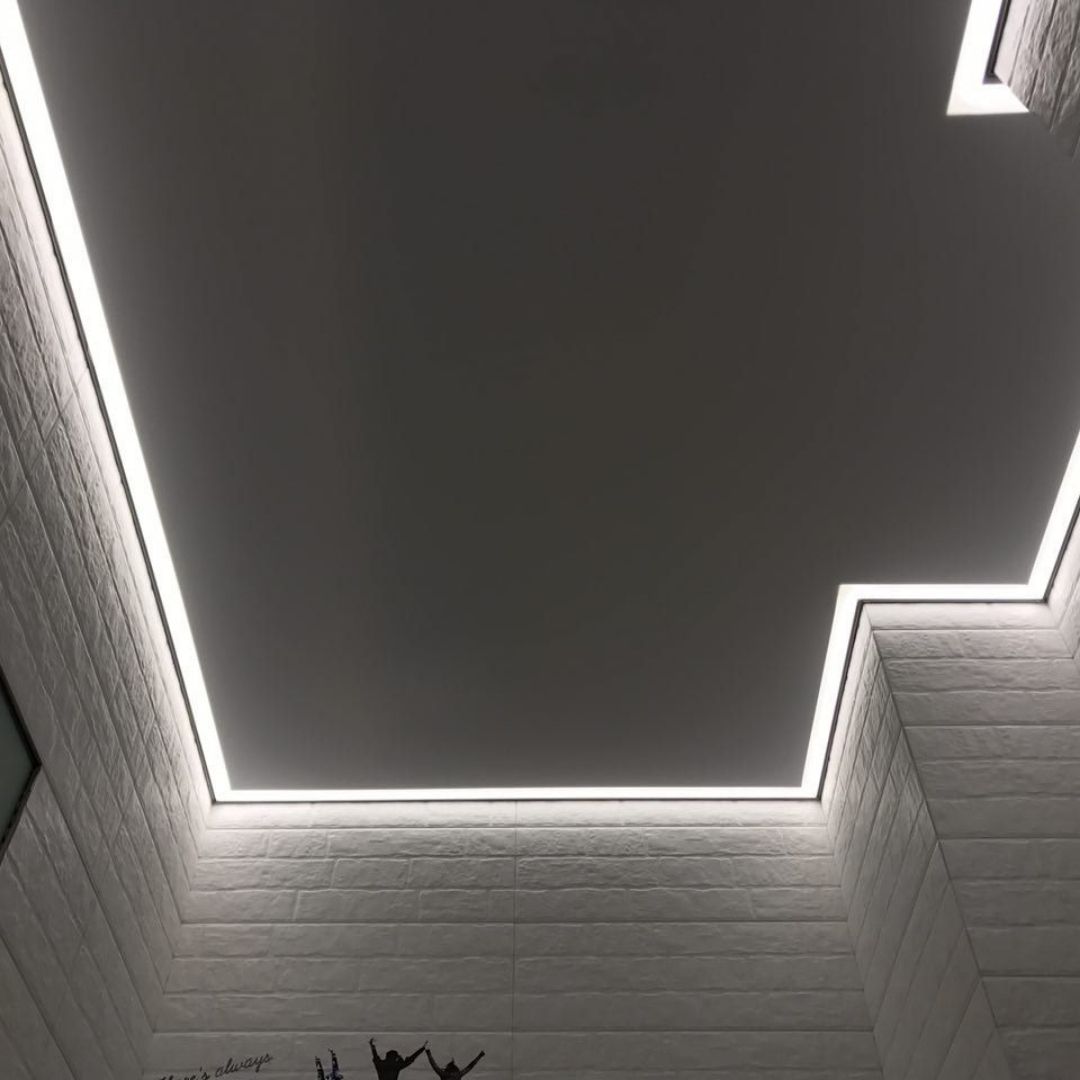 Светящийся потолок вместо люстр. Идеально ровное освещение.