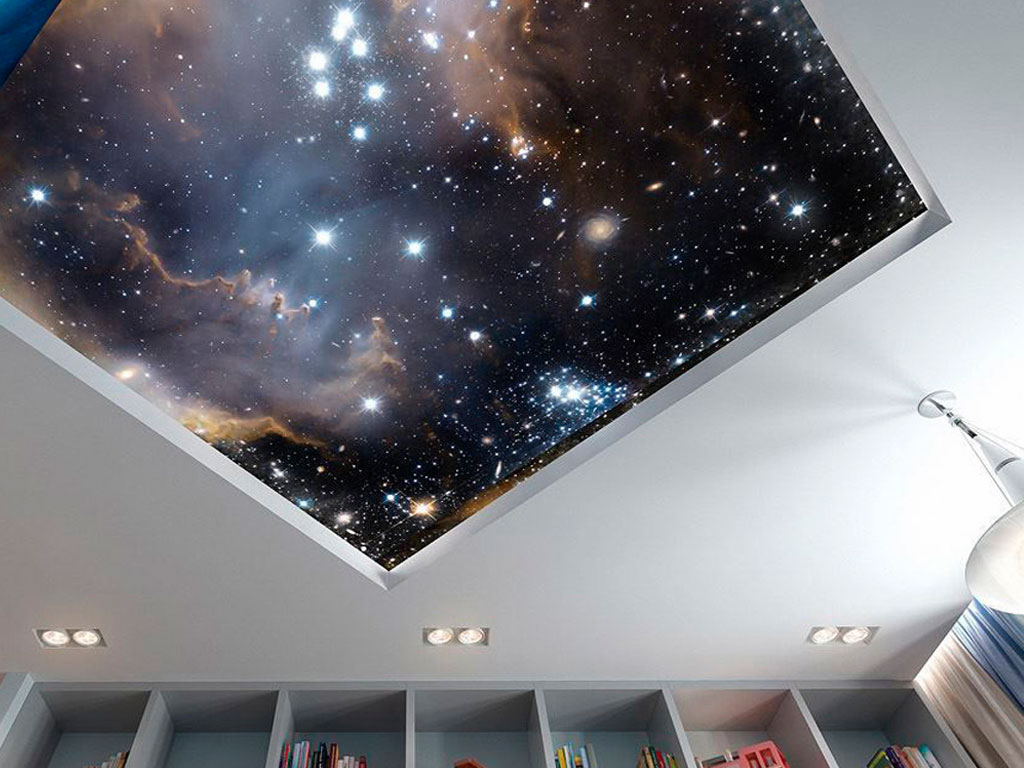 Скрываем неровности плиты, трещины и старую краску. Монтируем без выноса мебели — за 3–4 часа в стандартной комнате. Полотно выдержит затопление соседей сверху.